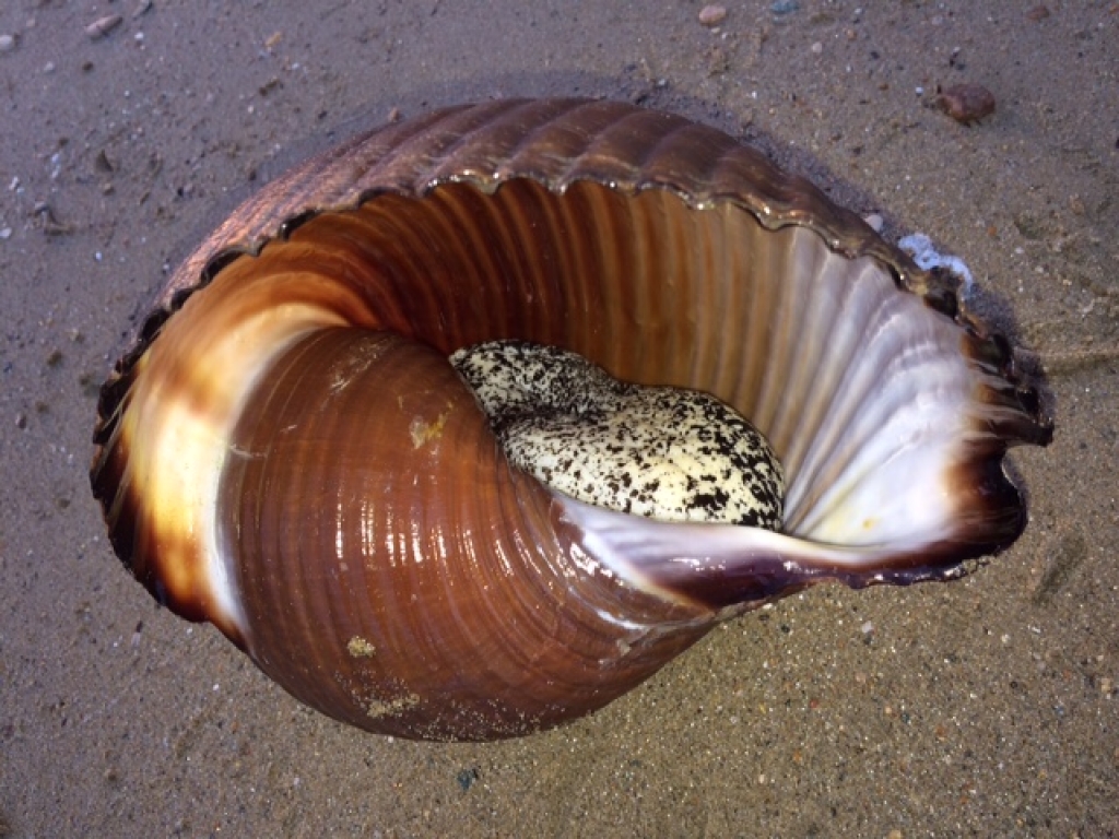 Dużą niespodzianką była dla Nas nieoczekiwana wiadomość od Pani Beaty Rozwadowskiej, która z rodziną spędza wakacje na greckiej wyspie Ios w archipelagów Cykladów. Pani Beata nie jest kolekcjonerem i o muszlach ma niewielkie pojęcie. Niemniej morskie ślimaki wzbudziły jej ogromną ciekawość. Bardzo Nas to cieszy, że właśnie do Nas zwróciła się o pomoc w celu identyfikacji muszli jaką jej syn miał przyjemność złowić o zmierzchu w ustronnej i malowniczej zatoczce w górzystej części wyspy Ios. Zazdrościmy Pani Beacie i jej synowi znaleziska! W dołączonej galerii prezentujemy wspaniały okaz jaki Nasi czytelnicy mieli szansę osobiście wyłowić. To doskonale zachowany egzemplarz Tonna galea. Znalezisko o tyle cenne i ważne, bo w Morzu Śródziemnym tych majestatycznych ślimaków jest coraz mniej. Przez wieki Tonna galea była chętnie spożywana przez miejscową ludność, co mocno ograniczyło jej populację. Pani Beata może mówić o wielkim szczęściu! Poinformowała Nas, że niniejsza stągwica została wyłowiona na ok. 5 - 6 metrach głębokości w pobliżu łańcucha małych kamieni, obok podwodnej rury doprowadzającej wodę słodką do wyspy Ios. Po sesji zdjęciowej ślimak - cały i zdrowy - powrócił do morza. Z relacji Naszej czytelniczki wiemy, że widziała na dnie wiele muszli ... sądząc z opisu, m.in. puste okazy Phalium granulatum udulatum oraz rozkolce Hexaplex trunculus i Bolinus brandaris. Bardzo Nas cieszy, że w Grecji ciągle jeszcze można natrafić na tak cudowne egzemplarze Tonna galea jak ten uwieczniony na pięknych fotografiach autorstwa Pani Beaty Rozwadowskiej. Bardzo dziękujemy za wiadomość i niezwykle cenny dla Nas materiał zdjęciowy!